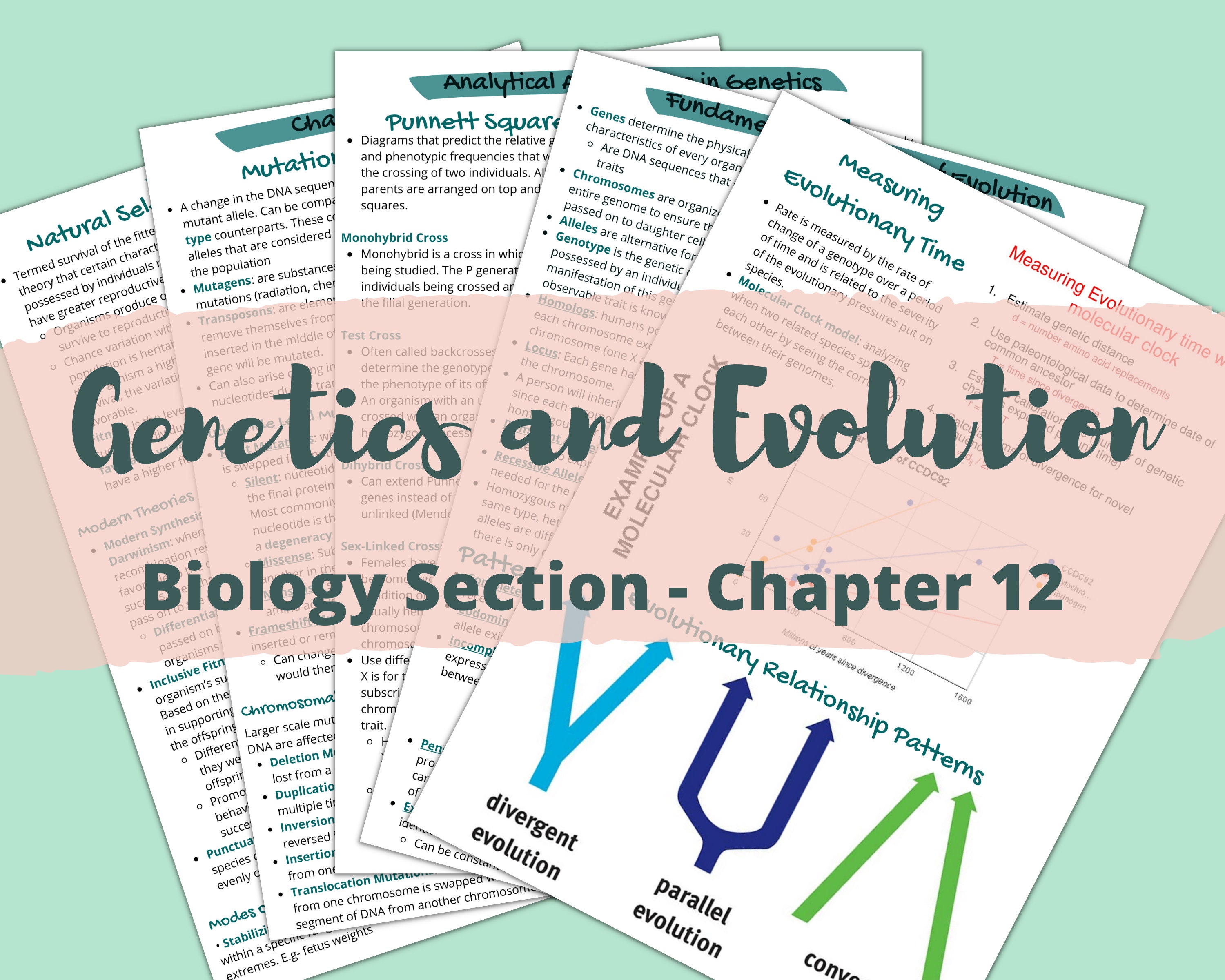 6 Pages Mcat Biology Chapter 12 Genetics And Evolution Etsy Uk